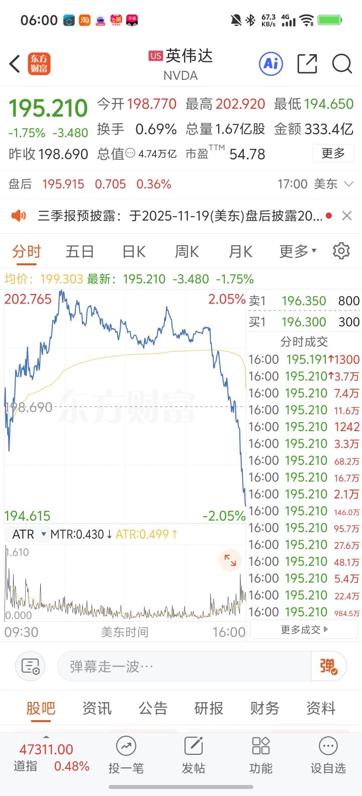 虽然没能收回昨天跌幅一半,但也还行,要是英伟达没跳水几天,昨天早盘也挺恐慌,期货一开盘接着跳水,最高时跌了1.19%,心想今天接着调整,中午前就全都拉回来了,英伟达财报是在本月19日盘后公布,还有一段时间。继续持有等着吧。$国富全球科技互联混合(QDII)人民币C$ $华宝纳斯达克精选股票发起式(QDII)C$ $建信新兴市场混合(QDII)C$