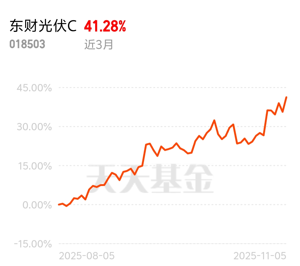 A股一路冲高,牛市特征越来越明显,光伏板块坐稳4000点以上总龙头。行业反内卷成功,出海订单持续爆发,西藏东财中证光伏产业指数C近3个月41.28%,这么能涨,我果断跟风入局不墨迹!$东财光伏C$