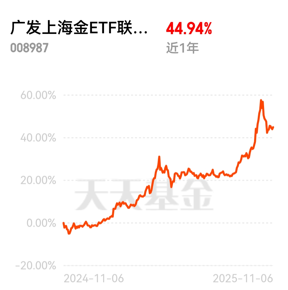 黄金的长期行情最好的应对方法就是回调加仓等涨,像是$广发上海金ETF联接C$是上