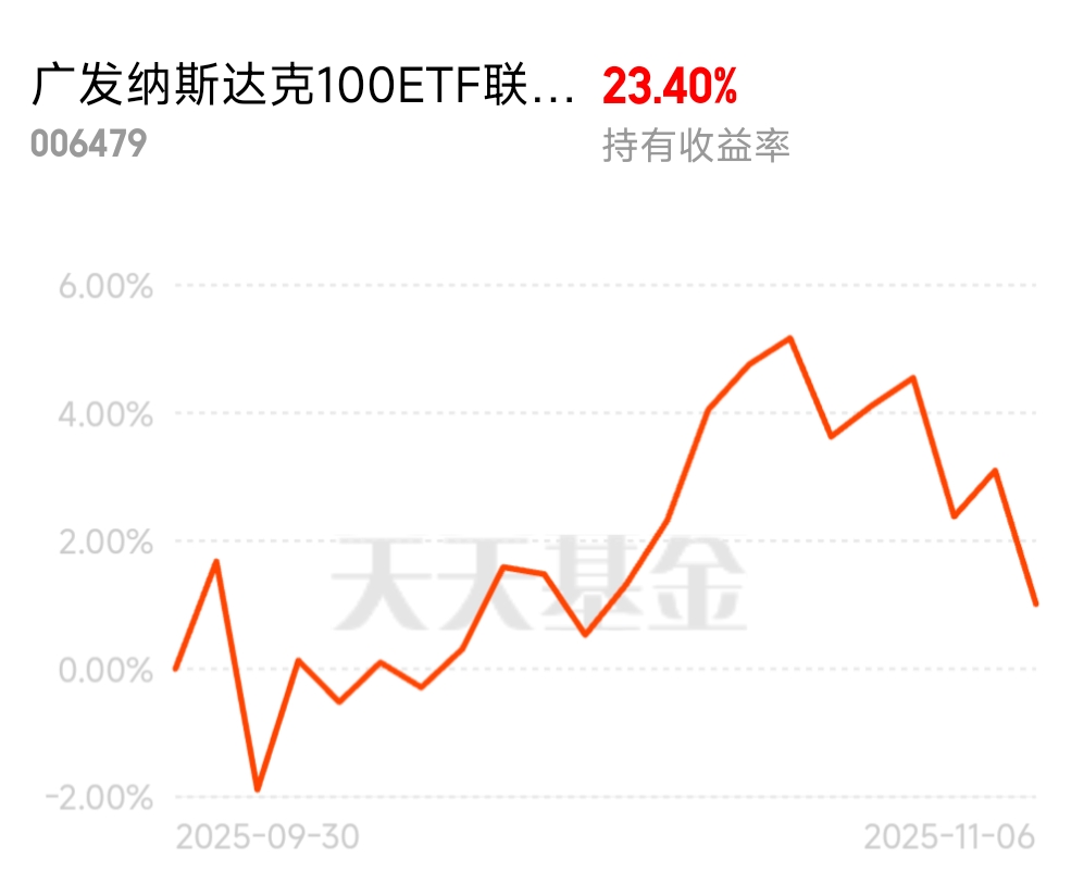 还是要看长远心态要好,定投就完事了 $广发纳斯达克100ETF联接人民币(QDII)C$