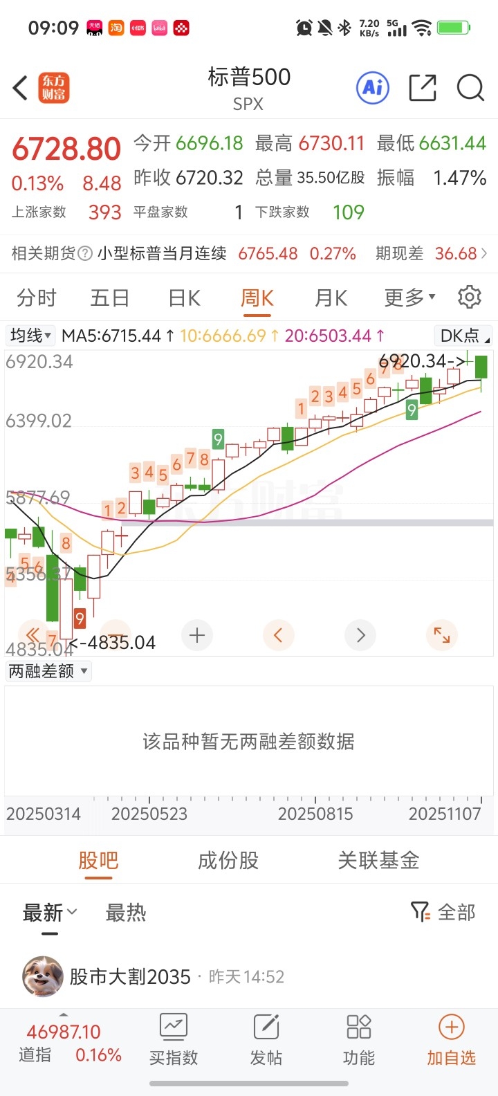 周末给美股算个命下,上周一,早上刚说美股涨得有点顺,可能随时来个回调,结果周一就开始大回调了,截止到周五最低点,标普500回撤了4.18%,纳指100回撤了6%,道指回撤最少3.1%左右,从短期来看,这波回调已经到位,如果从周五开始反弹也属于正常的。我最希望是在周五低点6631附近震荡下再上升,别再下跌了,虽然知道后面会涨回来,但下跌也是难受的。