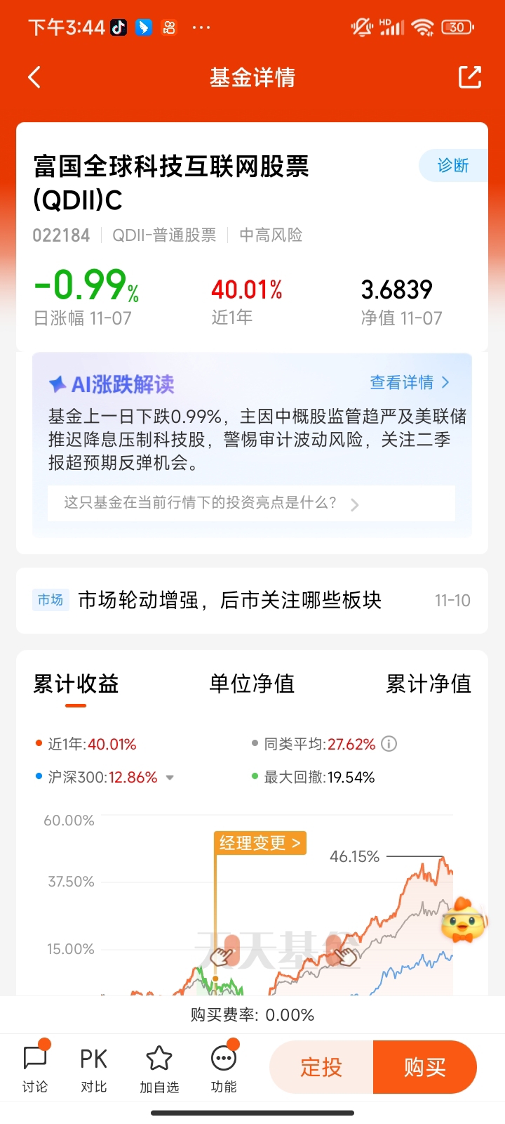 近期纳指限额买不进,转投富国全球科技互联网C,持仓更偏美股科技龙头,像微软、英伟达、台积电都有,还能买到额度,近半年涨了38%,领先不少同类。