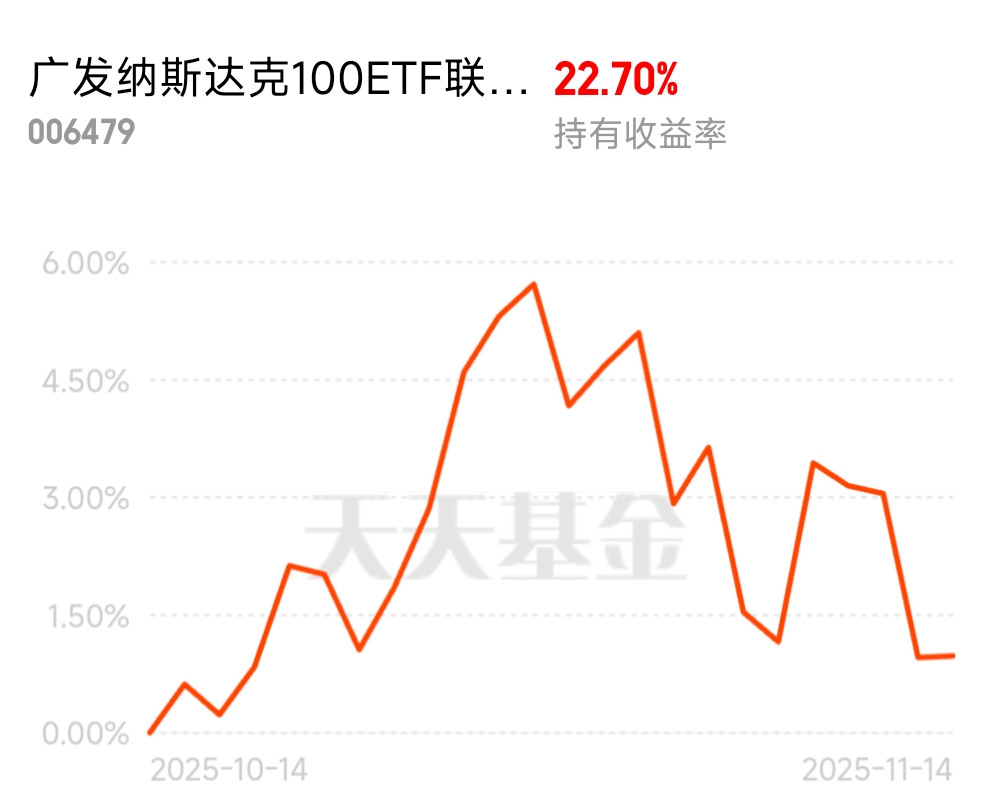 目前来讲还是娜娜的表现最让我满意,继续拿着吧 $广发纳斯达克100ETF联接人民币(QDII)C$
