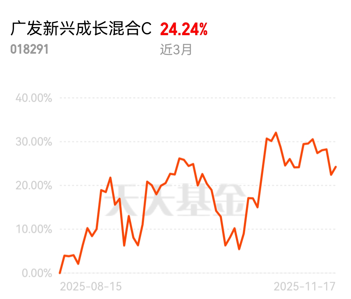 逆势上涨就是爽!前两天上车$广发新兴成长混合C$ 的迟到大肉了!3个月猛涨近25%!