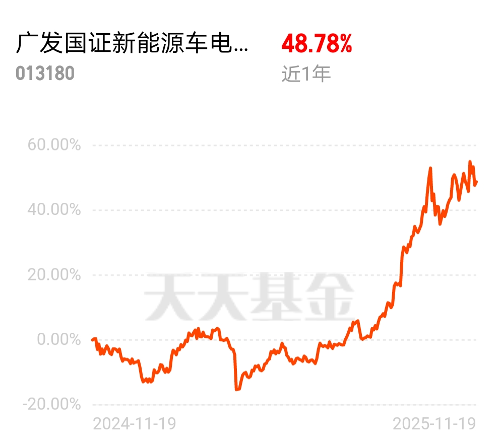 广发$广发国证新能源车电池ETF联接C$ 一直是电池里面业绩和热度最高的,加仓