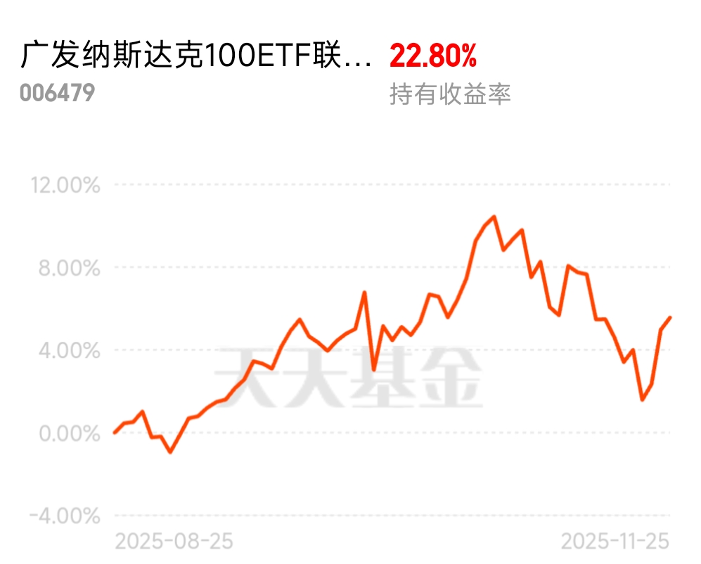 这里额度有点太小了,我加投了他家的270023,图他每天5w的额度,涨起来比这里还快些$广发纳斯达克100ETF联接人民币(QDII)C$