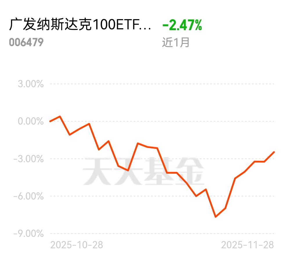 原以为科技股波动大,没想到纳指回调不多,涨的时候却从不掉队,这波 AI 驱动的上涨太稳了 $广发纳斯达克100ETF联接人民币(QDII)C$