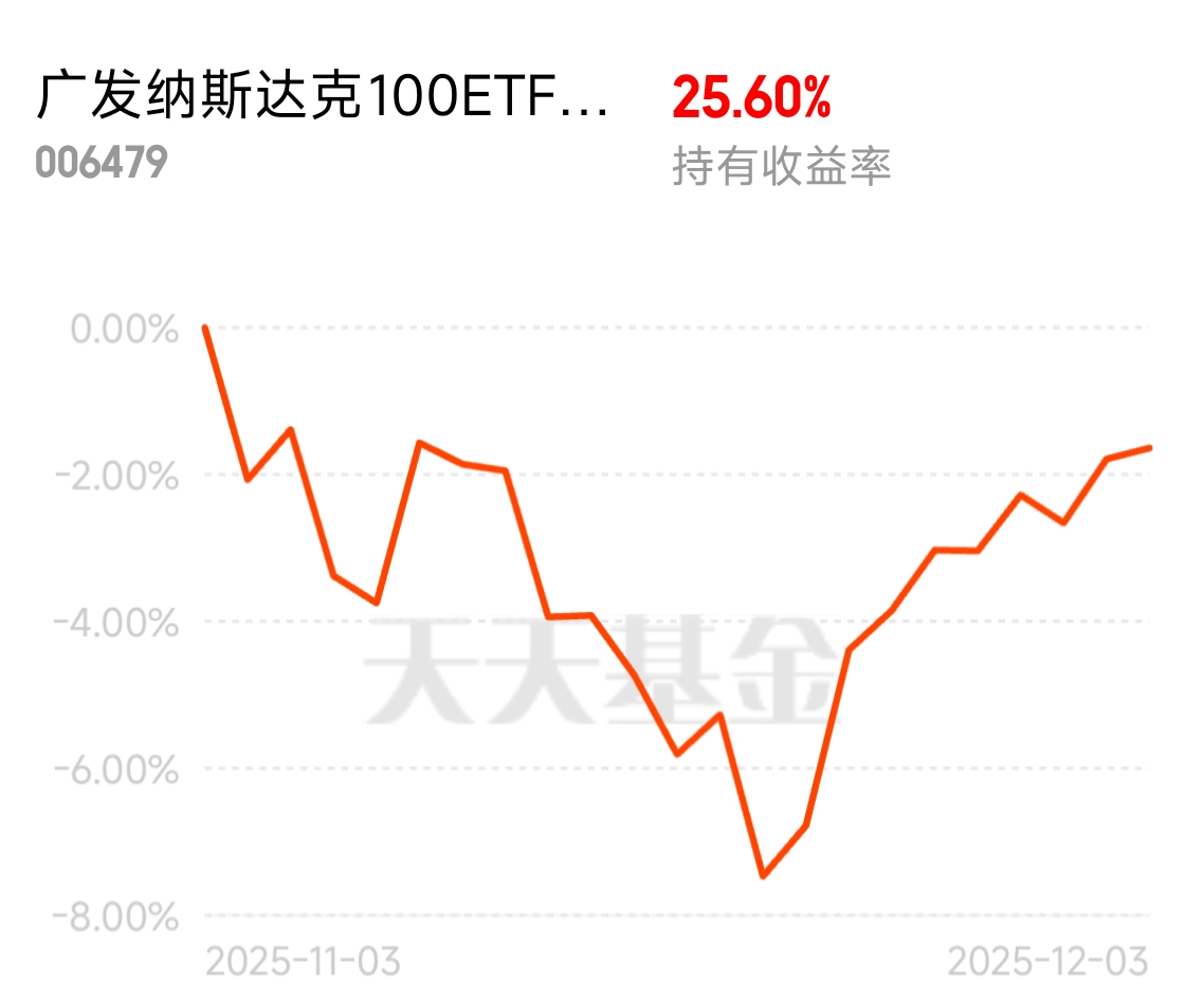 广发纳指走势稳跟踪准,拿了一年下来有16个点,还不错的