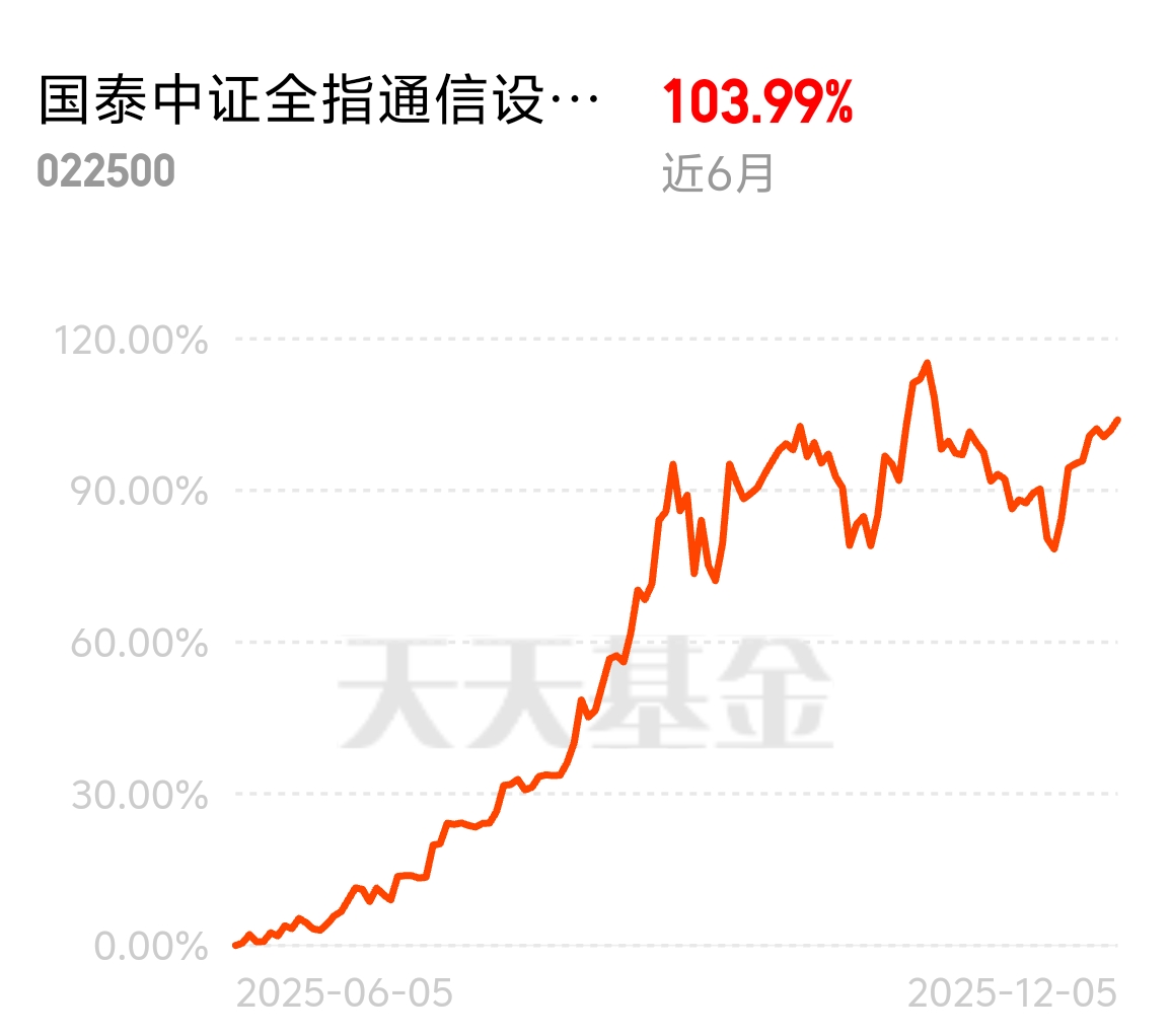 广发纳斯达克100ETF联接C让我分享了美股科技龙头的成长,但AI的生态系统是全球性的。国泰中证全指通信设备ETF联接E让我参与到“中国制造”赋能全球AI算力建设的环节中,其硬件核心占比超80%。该基金弹性表现卓越,今日预估净值大涨超5%,近半年回报104%。科技巨头的AI竞赛日益激烈,对算力硬件的要求水涨船高。这只基金与我的美股基金共同构建了“中美AI联动”的投资组合,充分利用两地市场优势,捕捉全球机遇。$国泰中证全指通信设备ETF联接E$