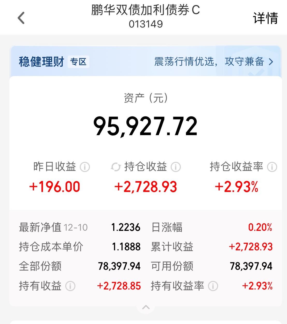 固收+,符合预期。$鹏华双债加利债券C(OTCFUND|013149)$