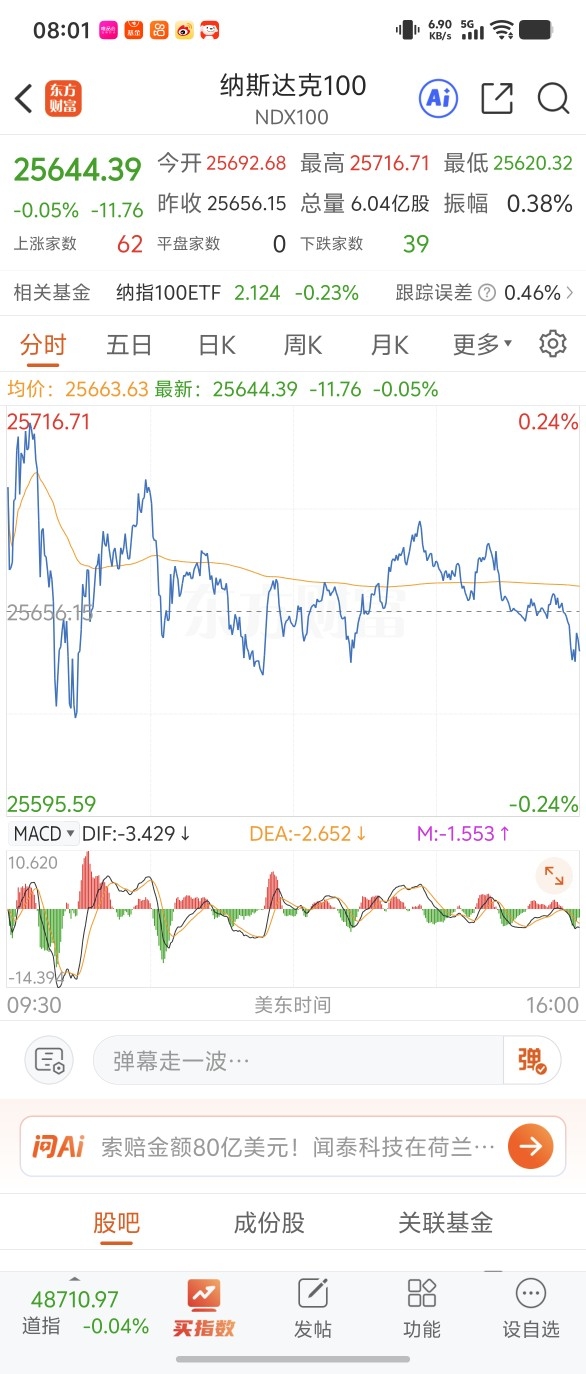 2025年12月26日净值,纳指100约跌0.1%,汇率跌0.05%。股指高开震荡,全天小幅度波动,成交价冷清,大部分人依然沉浸在过节阶段。