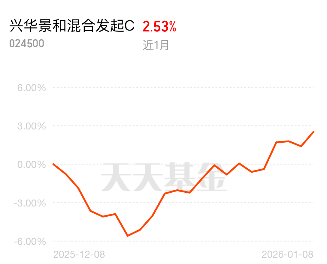 春季行情一确认,兴华景和就靠系统化的投资框架抓机会,昨天单日净值涨1.12%!成立以来赚了 23.80%,夏普比率比绝大多数同类都好,业绩一直很稳!它把高端制造研究得透透的,市场一回暖,就精准发力,帮我们稳稳赚超额收益!$兴华景和混合发起C$