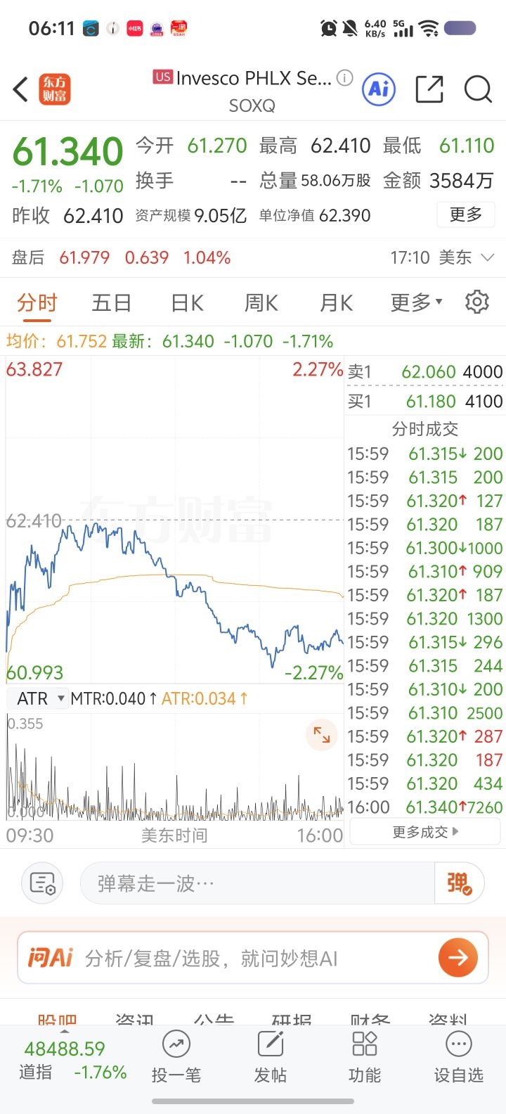 板块方面,黄金大涨,生物科技小涨,最近生物科技跟大盘反着来啊。半导体冲高回落,本来快红了,后面又稀拉跌回去了,油气小绿。大型科技股全部下跌,英伟达和特斯拉,台积电和博通跌超4%,大型科技股依然是杀跌主力。