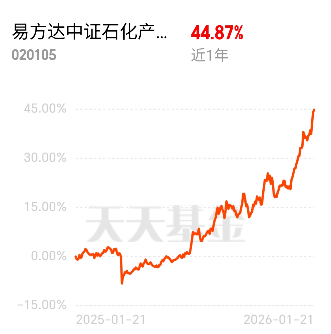 浙石化 - 烯烃中试装置试车成功,化工技术突破,石油天然气领涨超有技术,易方达中证石化产业 ETF 联接发起式 C 近 1 年 44.87%,三桶油 + 细分化工机会都想抓住,买石化产业靠技术$易方达中证石化产业ETF联接发起式C$