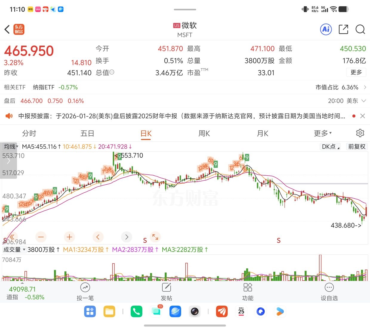 本周将会是非常关键一周,几个大型科技股将决定接下来大盘走向,今年开始纳指100表现很弱,就是因为大型科技股不给力。不过最近这两天,meta和微软开始反弹,机构提前介入炒作股价,毕竟这两是跌了很久了。苹果还没啥动静,这几个大型科技股权重很大,所以即使银行股,能源股在努力拉大盘,也拉不了多少。如果这几个大家伙财报给力,纳指100也将不涨,向上空间就大了,买纳指100的基金就不会那么憋屈,毕竟最近美股主动型基金比纳斯达克100指数基金好很多。