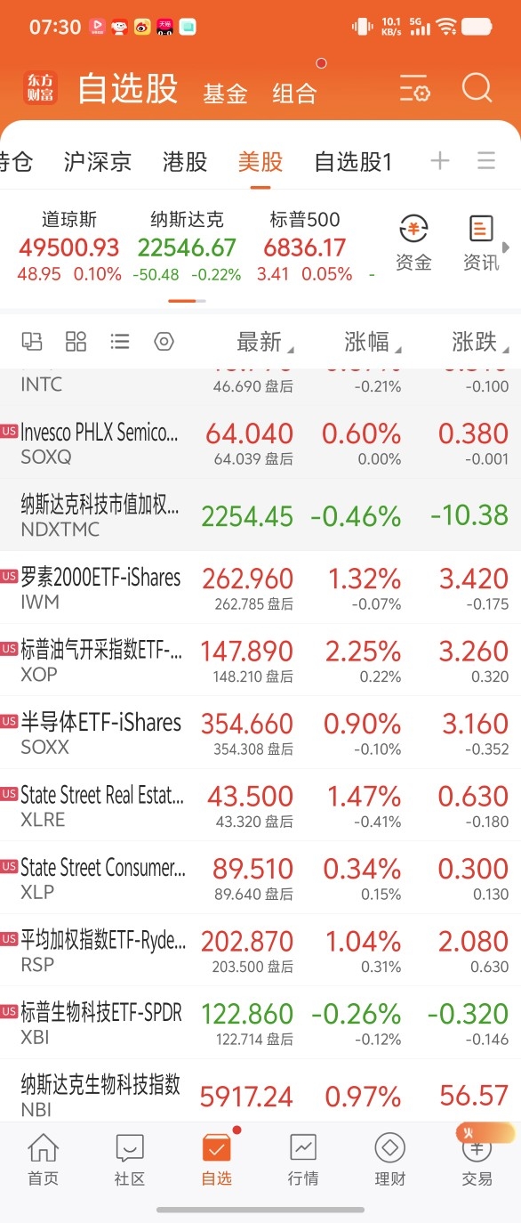 板块方面,多少收涨。黄金,油气涨超2%,半导体涨0.6%,日常消费涨超1%,标普生物从涨2.2%到跌0.2%,晦气。纳指生物也是跳水涨0.9%。大型科技股除了特斯拉微涨0.09%外,全部收跌,说明中盘股涨的好点,毕竟纳指100还是红的。