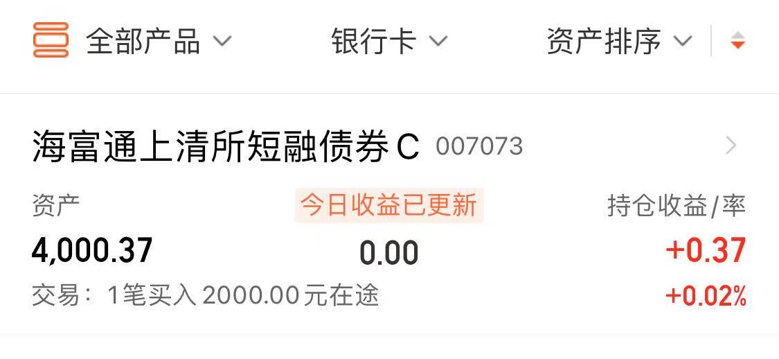 比如我8月初提到过的短融产品,$海富通上清所短融债券C(OTCFUND|007073)$