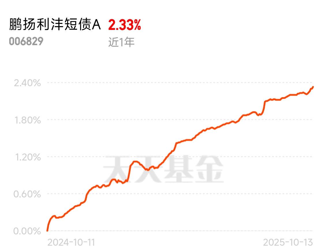 宝宝类产品收益率有点低,为了保证资金的灵活性,我买了宝宝+“$鹏扬利沣短债A$”
