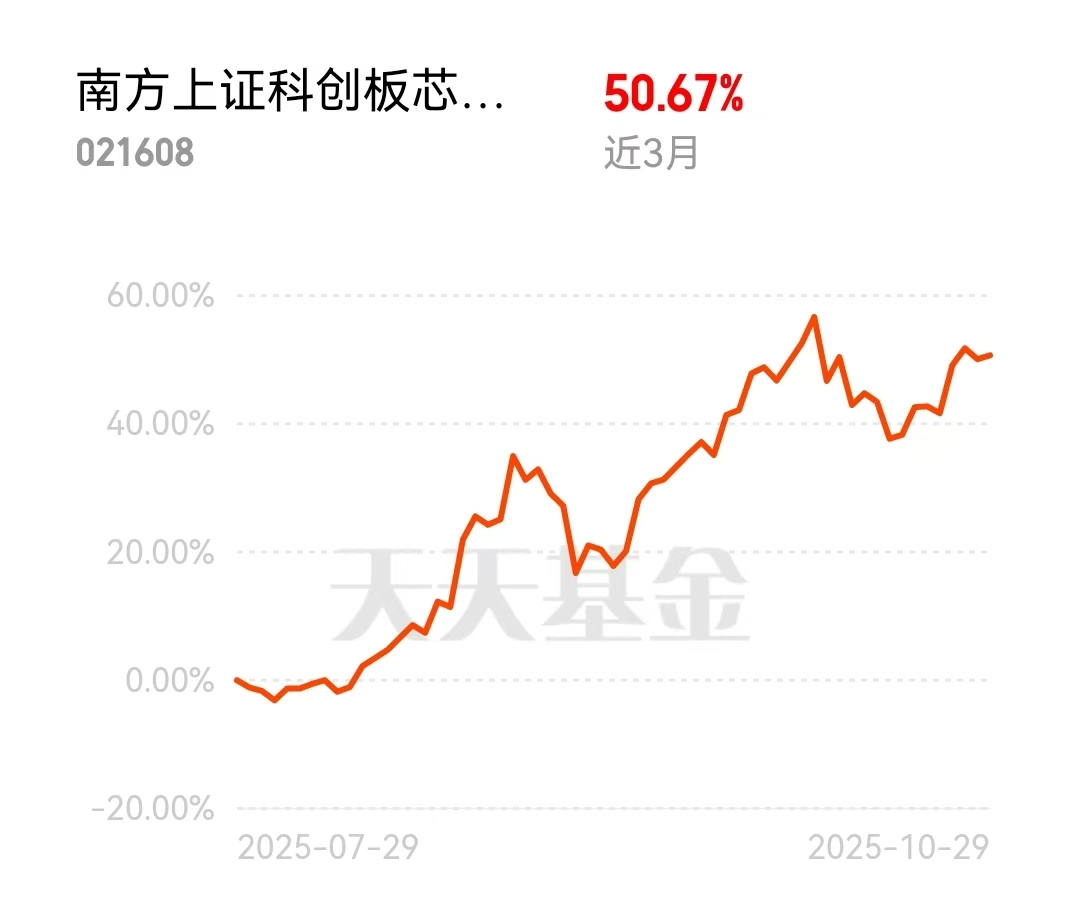 看看这个硬核数据:$南方上证科创板芯片ETF发起联接C$(021608),近三个月涨幅50%,近一年涨幅76.54,同类排名都是第一。成绩单足够亮眼。它跟踪的上证科创板芯片指数,集中了科创板里业务涉及芯片设计、制造、材料设备等关键环节的公司。近期,有关芯片行业需求回暖、业绩改善的讨论增多,形成了一定的基本面支撑。这个基金用实际表现证明了它是当前市场中把握芯片领域机会一个非常有力的工具。如果你在关注芯片领域,这个产品提供了一个指数化的参与视角。#美联储再次降息!12月降息与否难料#