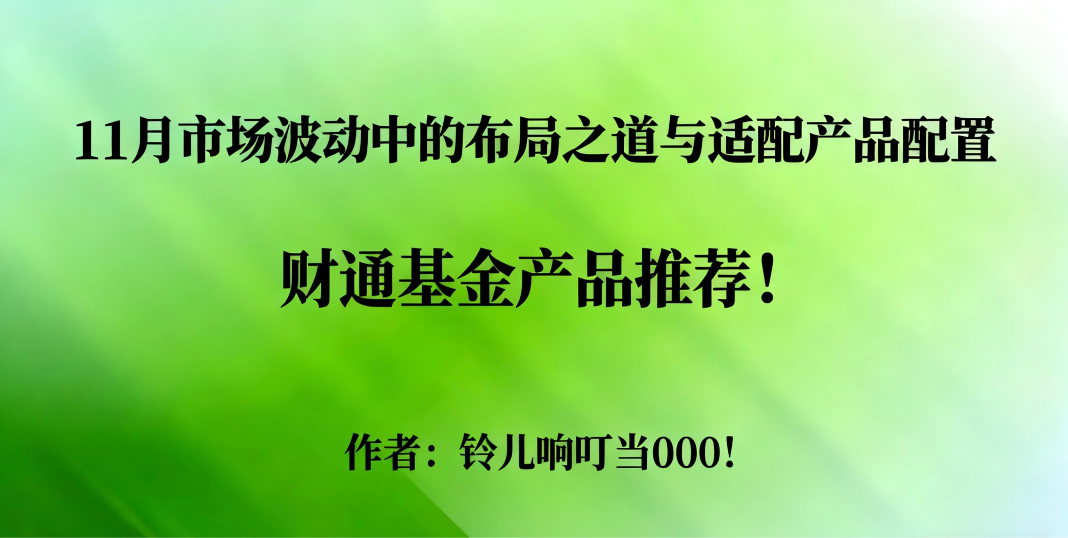 铃儿响叮当000又来报道了,作为财通基金的铁粉,我怎么会不参加呢,必须支持一下!今天,我来畅谈一下11月市场波动中的布局之道与适配产品配置:财通基金产品推荐!下面,咱们就进入正题: