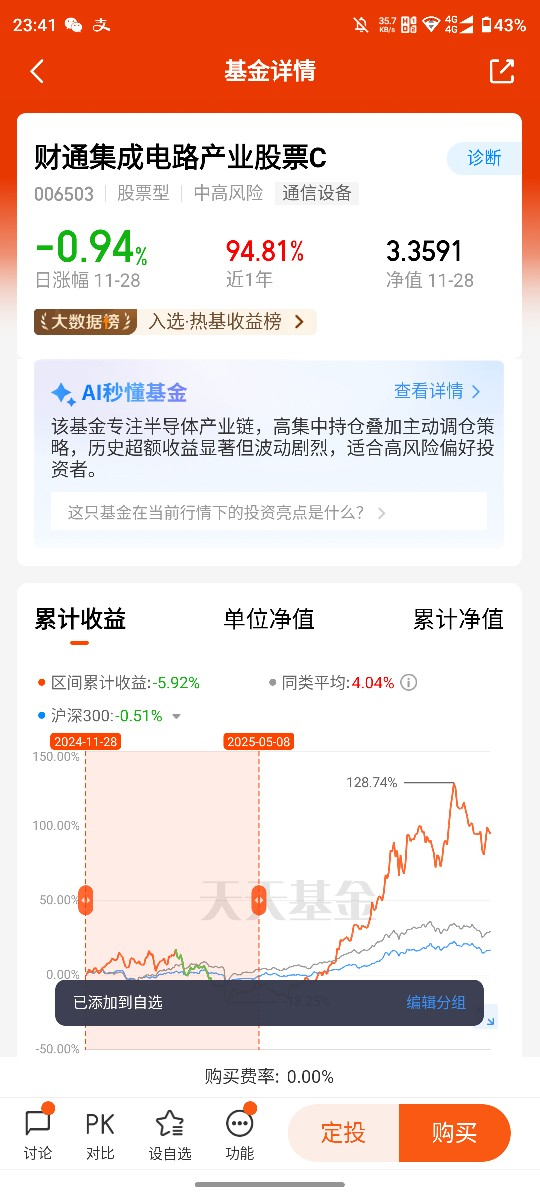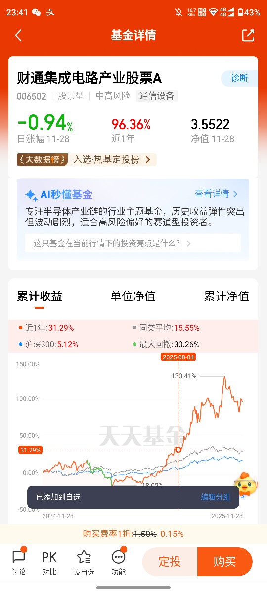 综上,11月半导体产业具备政策、业绩、需求多重支撑,景气上行趋势明确,财通集成电路产业基金凭借精准的持仓布局、优异的业绩表现与费率优势,成为布局该赛道的优选标的。投资者可把握11月布局窗口期,通过科学的定投策略与合理的仓位控制,借助该基金深度参与半导体产业成长浪潮,在风险可控的前提下兑现行业高景气带来的投资回报。@财通基金 @稳健小基窝 @发财一条路1