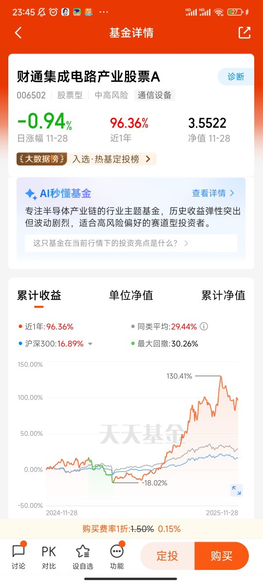 当然,11月投这只基金也不能乱买,得掌握正确的策略。首先不建议一次性满仓,芯片板块波动本来就比纯债基、宽基基金大,最近板块涨得不少,直接追高容易站岗。最好的方式是周定投或者月定投,比如每个月发工资后固定投一笔,市场回调的时候还能手动多加仓,这样能摊平成本,不用纠结“买在最高点” 。其次要选对份额,C类份额没有申购费,持有满一定时间还免赎回费,平时只收一点销售服务费,对想长期拿着、或者频繁定投的朋友来说,能省不少手续费,长期下来复利效应很明显。