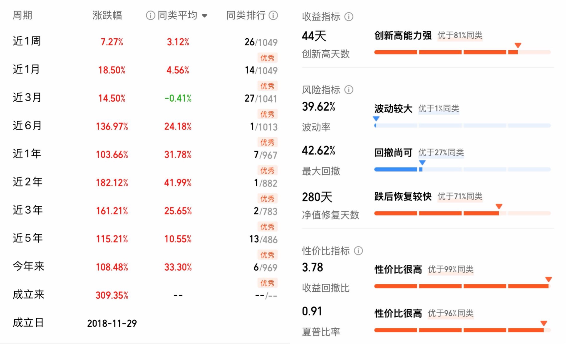业绩说话。金梓才经理从2018年11月管理这只基金以来,任职回报超过了309%,大幅跑赢了创业板指数。从近一年、近六个月的表现看,涨幅分别达到103.66%和136.97%,远远超过同类平均水平,评级也很优秀。当然,过去业绩不代表未来,但这至少证明了他过去在科技主线上把握得不错。