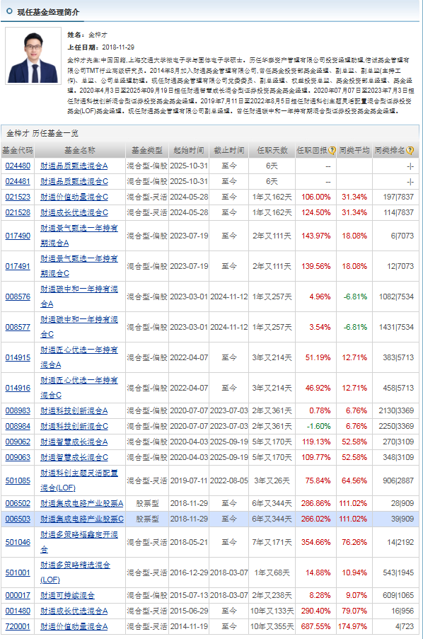 基金经理金梓才自2018年10月18日管理该基金,任职期内收益113.66% 。他短期、中期和长期的盈利能力都非常优秀,虽然抗风险能力有所欠缺,但整体收益与风险控制得比较好,投资管理能力处于中上水平。