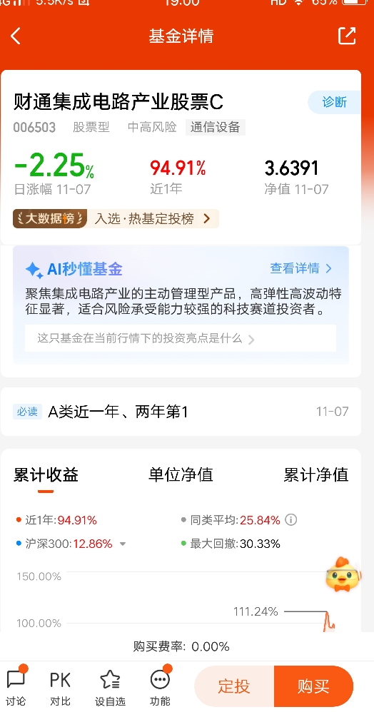 11月选择投资$财通集成电路产业股票C$,近一年上涨94.91%。主要投资科技、