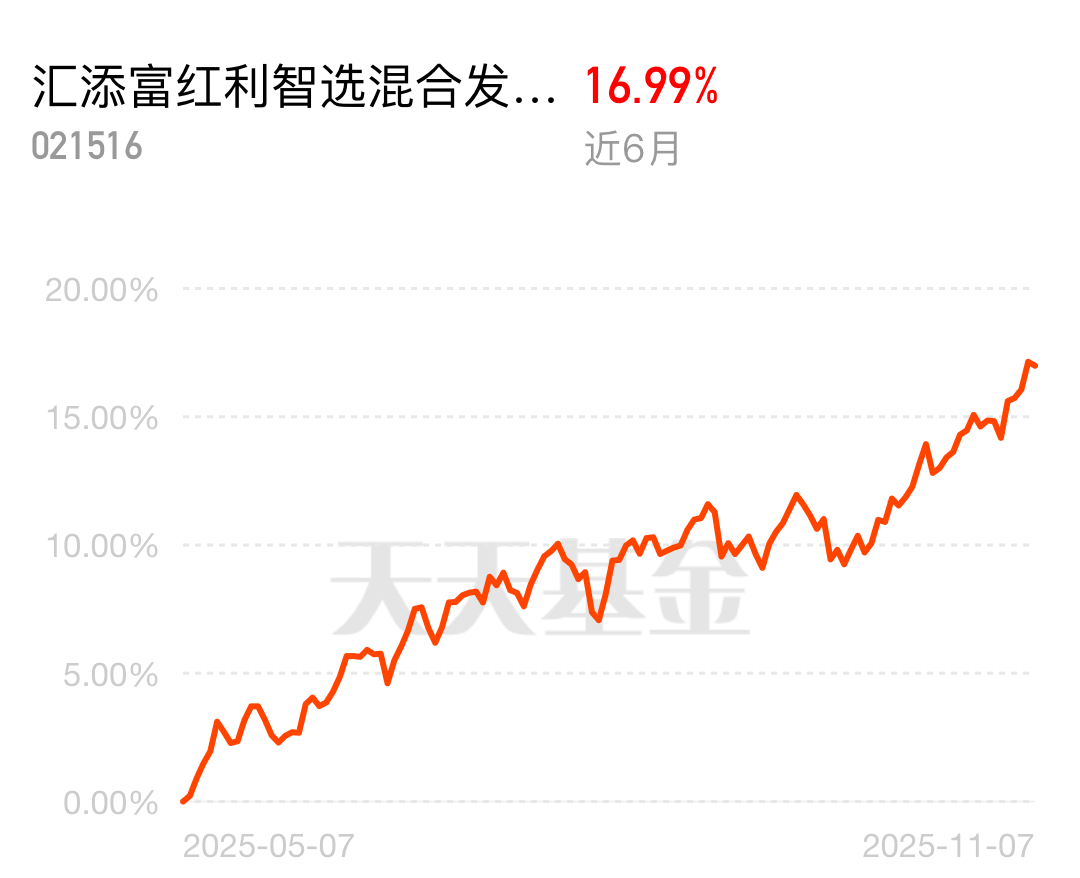 “稳增长+安全发展”的政策方向明确,基建、能源安全等领域的支持政策陆续落地,利好红利相关板块。汇添富红利智选混合C近6个月涨16.99%,踩着政策东风,在复杂市场中稳步上涨,让投资者更安心。$汇添富红利智选混合发起式C$