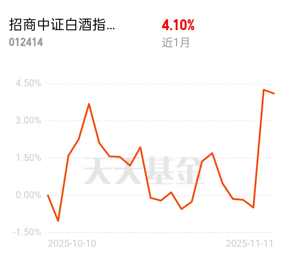 白酒行业最艰难的时期已过,消费板块整体转好,科技板块则暂时承压。招商中证白酒指数C今日跟着消费板块反弹,近1个月涨了4.10%,在资金高切低的行情里,是个稳健的选择。