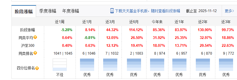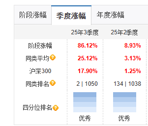 那这种调仓表现如何呢?从季度涨幅可见,3季度收益率86.12%,同类排名2/1050,非常优秀;