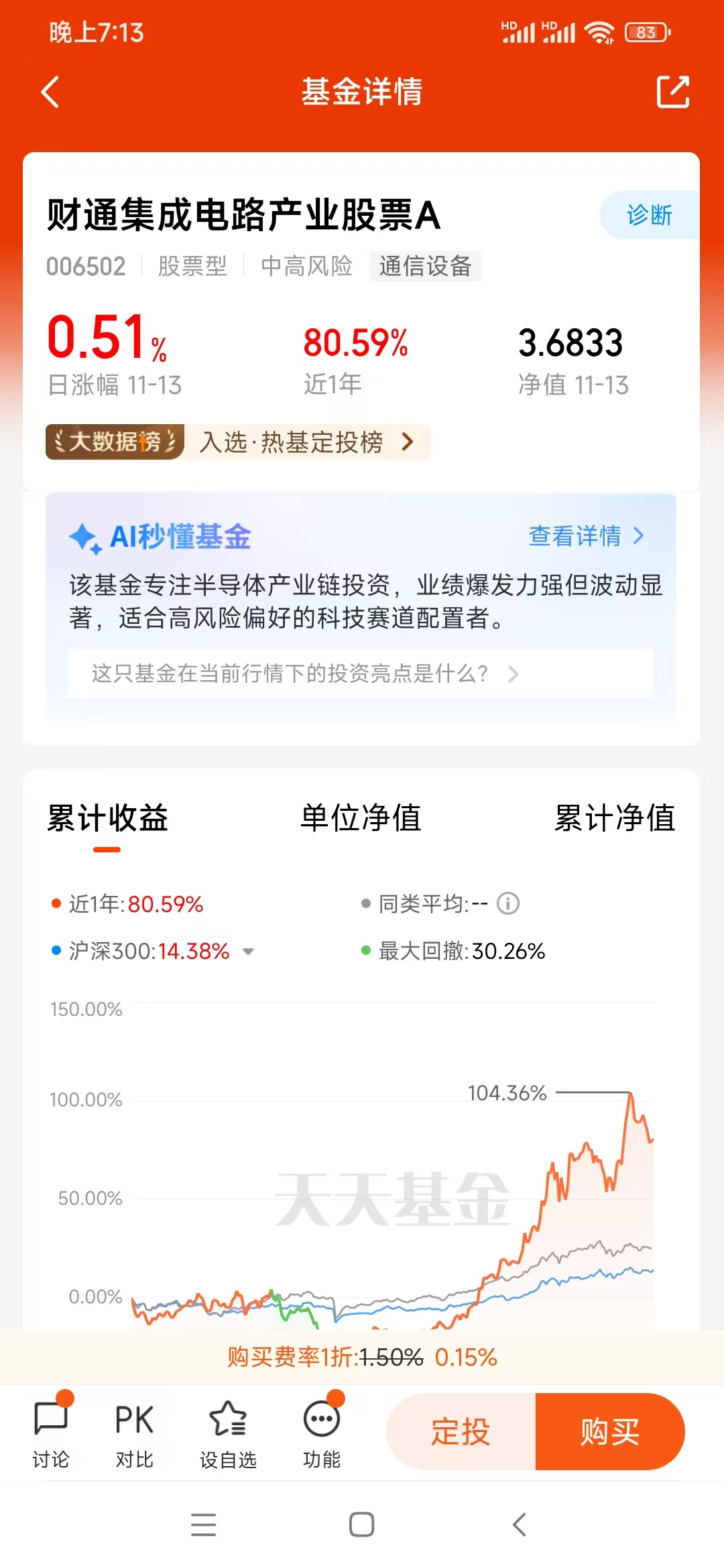 前面把算力、通信的机会说得再明白,咱们上班族也得面对一个现实:没那么多时间研究个股、盯行业动态,想真正把这些机会变成收益,选对基金是关键,而我的选择便是——财通集成电路产业股票C(006503)。