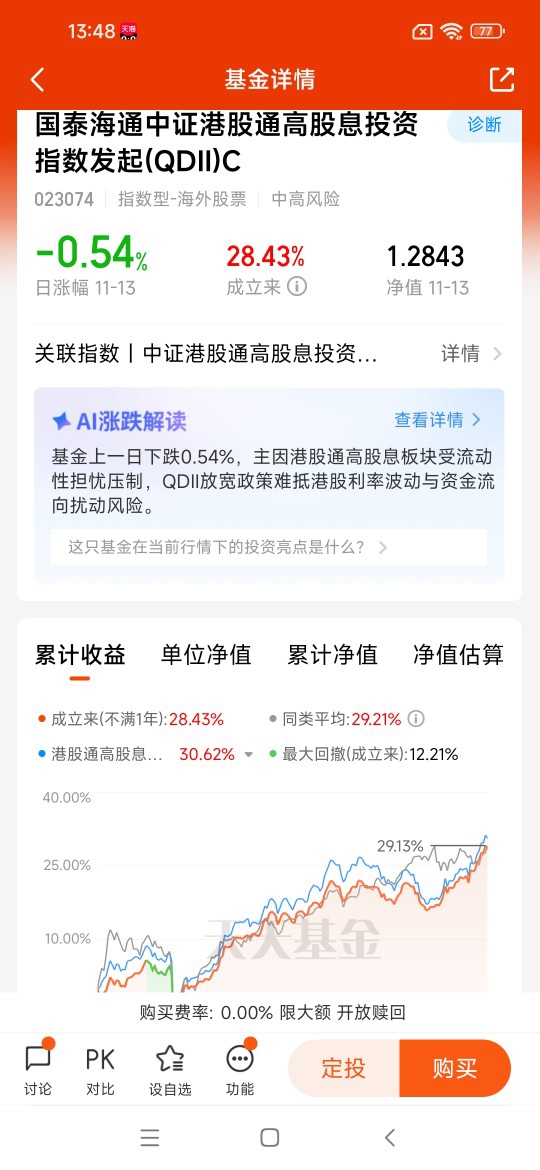 国泰海通中证港股通高股息投资指数发起(QDII)C,业绩表现,稳步攀升,红利韧性凸显。