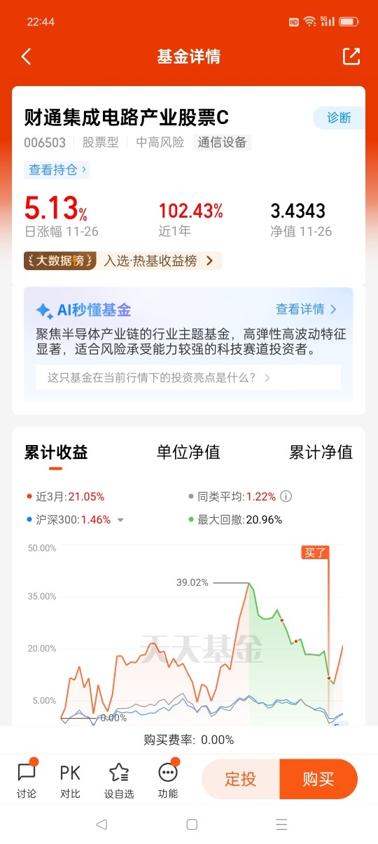 #11月基金投资策略# 我通过以下两个方面,解决如何在11月的市场波动中找准布局方向的问题:首先,咬定科技投资主线不放松(尤其是半导体芯片方向),任尔市场东西南北风;其次,持续关注财通基金公司旗下基金产品,公司投研实力非凡,主动权益产品表现突出,@财通基金金梓才 经理管理能力超强!
