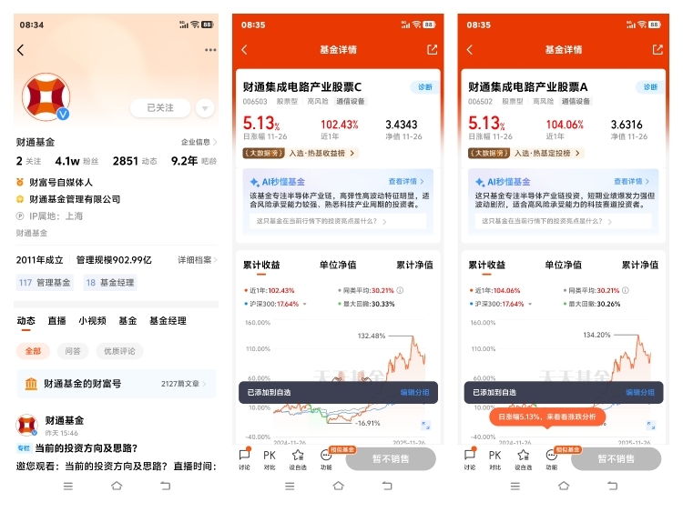 对于普通投资者而言,面对科技板块的波动,更应保持理性视角。财通集成电路产业股票C的历史表现已经证明,短期波动无法阻挡长期成长:在经历2022年和2023年的市场调整后,基金在2024年伴随行业复苏实现了显著反弹,长期业绩稳居同类前列 。对于看好科技产业长期发展的投资者来说,当前的板块回调恰恰是布局优质资产的窗口期。需要注意的是,该基金作为股票型基金,股票仓位不低于80%,波动风险相对较高,更适合能够承受短期波动、投资期限在3年以上的投资者。