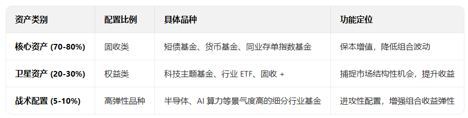 核心资产提供稳定性,卫星资产追求成长性,战术配置把握短期热点,形成 "进可攻、退可守" 的完整组合