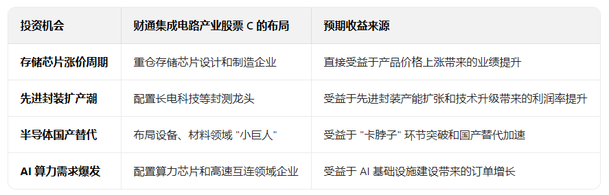 集成电路产业作为现代科技的核心基石,在当前数字化、智能化快速发展的时代背景下,具有极为广阔的发展前景。从消费电子到人工智能、物联网、汽车电子等领域,对集成电路的需求持续增长。例如,智能手机不断追求更强大的芯片性能以支持高清显示、5G通信和复杂的 AI 应用;汽车智能化的推进使得车载芯片的需求呈爆发式增长。随着国产替代进程的加速,国内集成电路企业迎来了前所未有的发展机遇,有望打破国外垄断,实现产业的自主可控。财通集成电路产业股票C基金聚焦这一赛道,能够充分分享行业增长带来的红利。