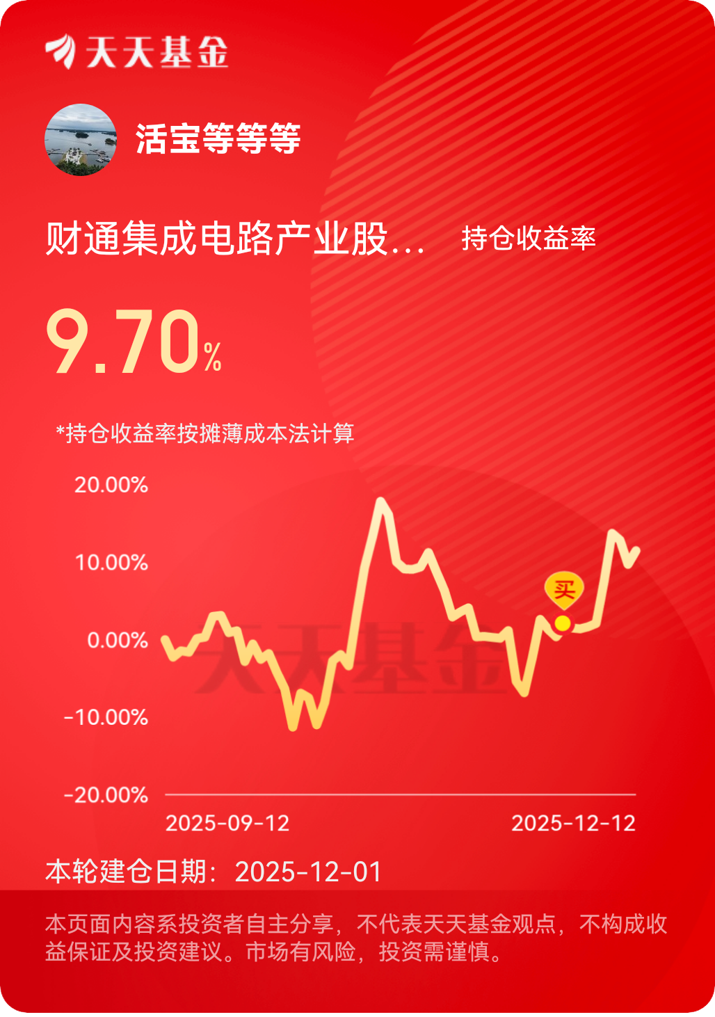 从资本市场表现来看,AI相关板块虽有短期波动,但整体呈现出“回调后修复”的态势,就像我持有的财通集成电路产业股票C,近期持有收益率达到9.70%,也能侧面反映出AI产业链中半导体、算力等核心环节的业绩支撑力。这只基金聚焦集成电路产业,而集成电路是AI发展的硬件基石,无论是大模型训练还是智能终端普及,都离不开芯片技术的突破,基金精准布局了这一核心赛道,能充分享受AI产业升级的红利。#晒收益#
