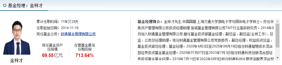 更重要的是,这只基金的基金经理金梓才先生履历扎实,深耕TMT行业多年,经历过多轮市场牛熊,对科技板块的理解很深,加上财通资管的雄厚实力做支撑,投资运作更有保障,持有也更放心。