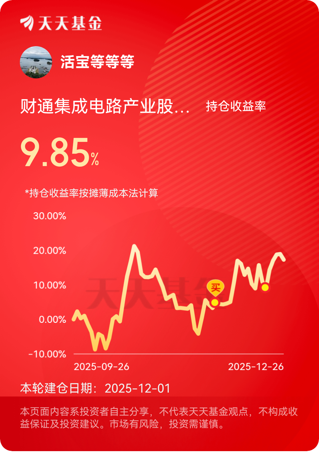 接下来我打算继续坚定持有这只基金,同时根据市场波动做小幅度的仓位调整。既依托专业基金的优势布局赛道,也用谨慎的操作应对板块的高波动,希望在2026年,能借着半导体产业的发展东风,收获更多实实在在的投资回报。@财通基金