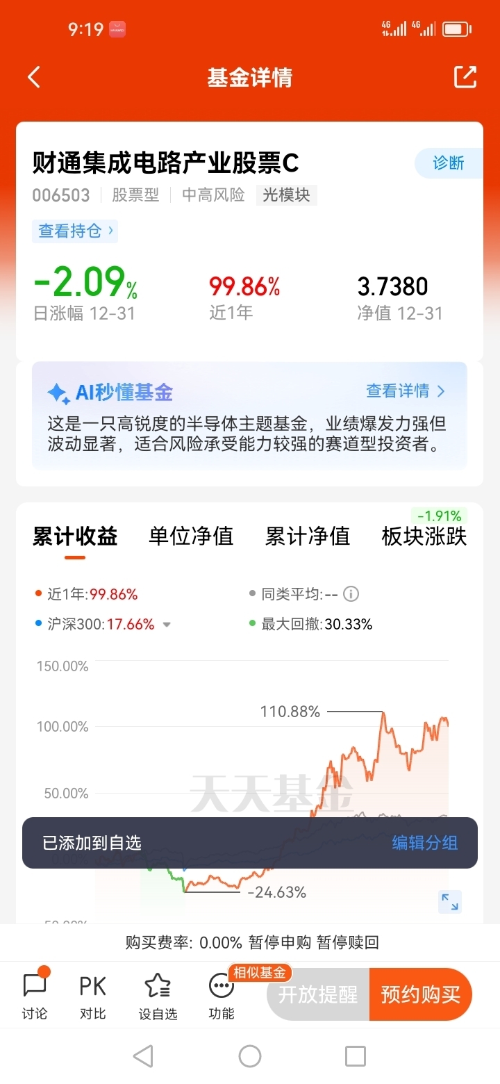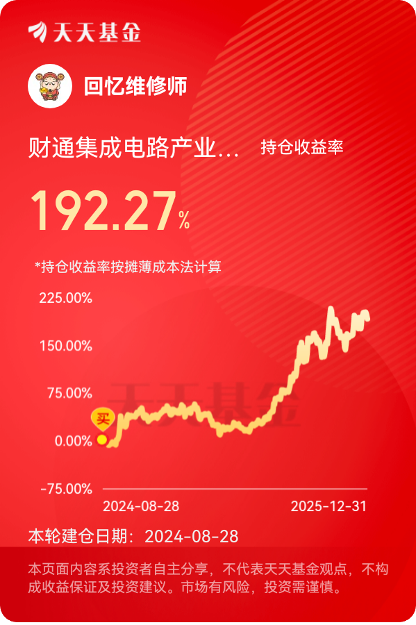 综上所述,我提前布局了财通集成电路产业股票C(006503),因为金梓才基金经理对于人工智能赛道相当熟悉,同时他的投资经验也是相当丰富的。@财通基金