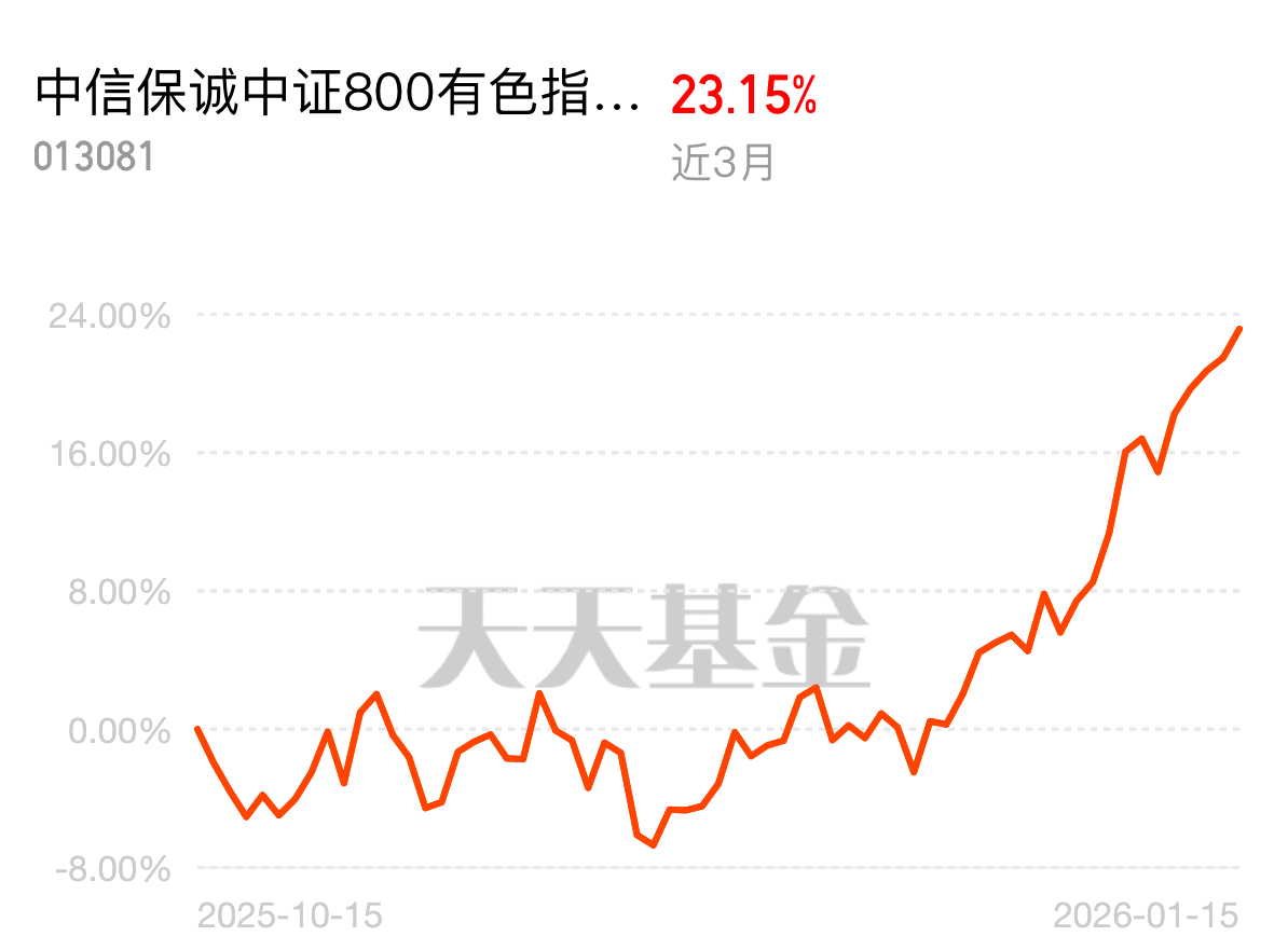有色板块持续发力,五连阳稳步上涨,开盘领涨各大板块。中信保诚中证 800 有色指数 (LOF) C 重仓稀有金属,稀缺价值凸显,近 3 月上涨 23.15%,表现稳健靠谱,讨论区福利红包还在发放,别错过这波好机会。$中信保诚中证800有色指数(LOF)C$