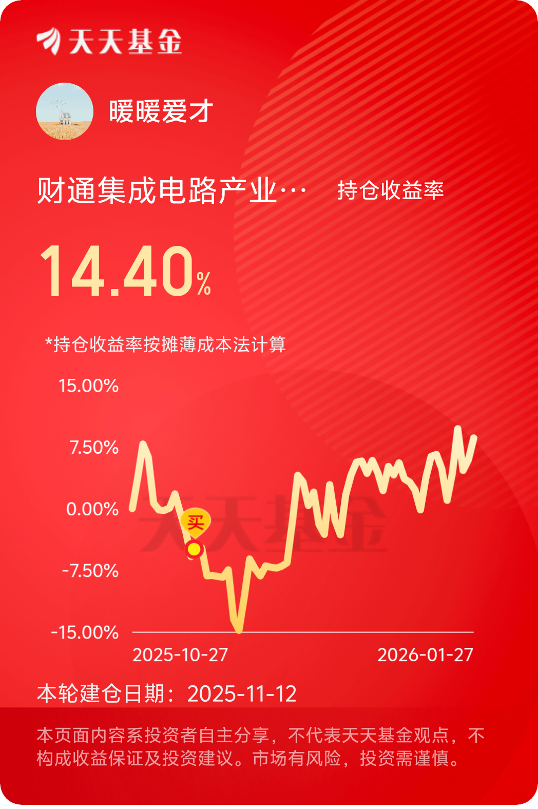 这走势让我越看越有信心,打算再拿一拿看看$财通集成电路产业股票C$