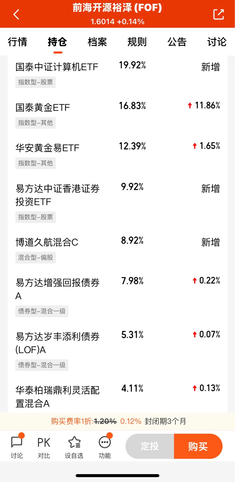2、与此同时,它的持仓包括计算机、黄金、证券类etf,占比59.06%,还包括其他混合型、债券型基金等,既冲劲十足,又守护有方;