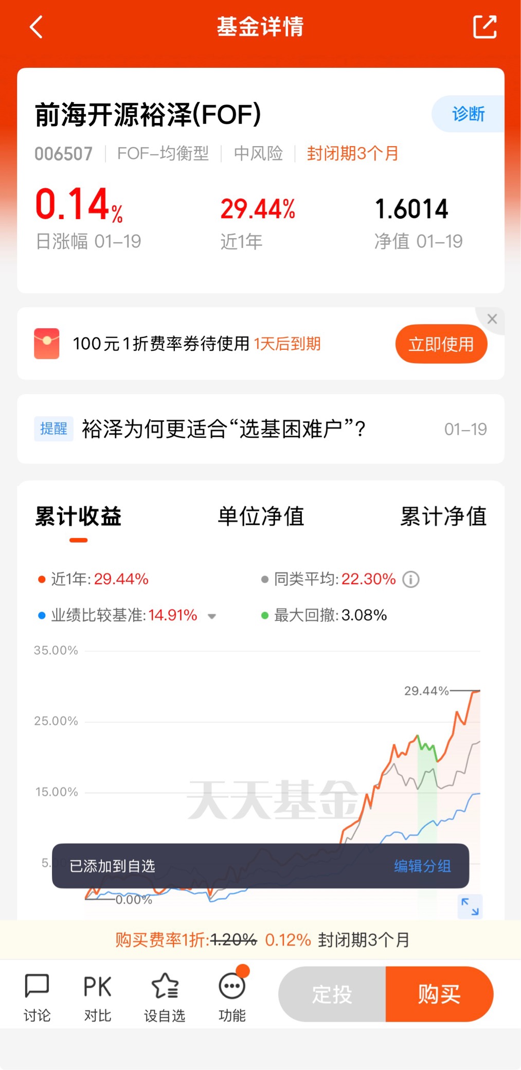 骑牛看熊选择前海开源裕泽(FOF)(006507)的投资心得如下: