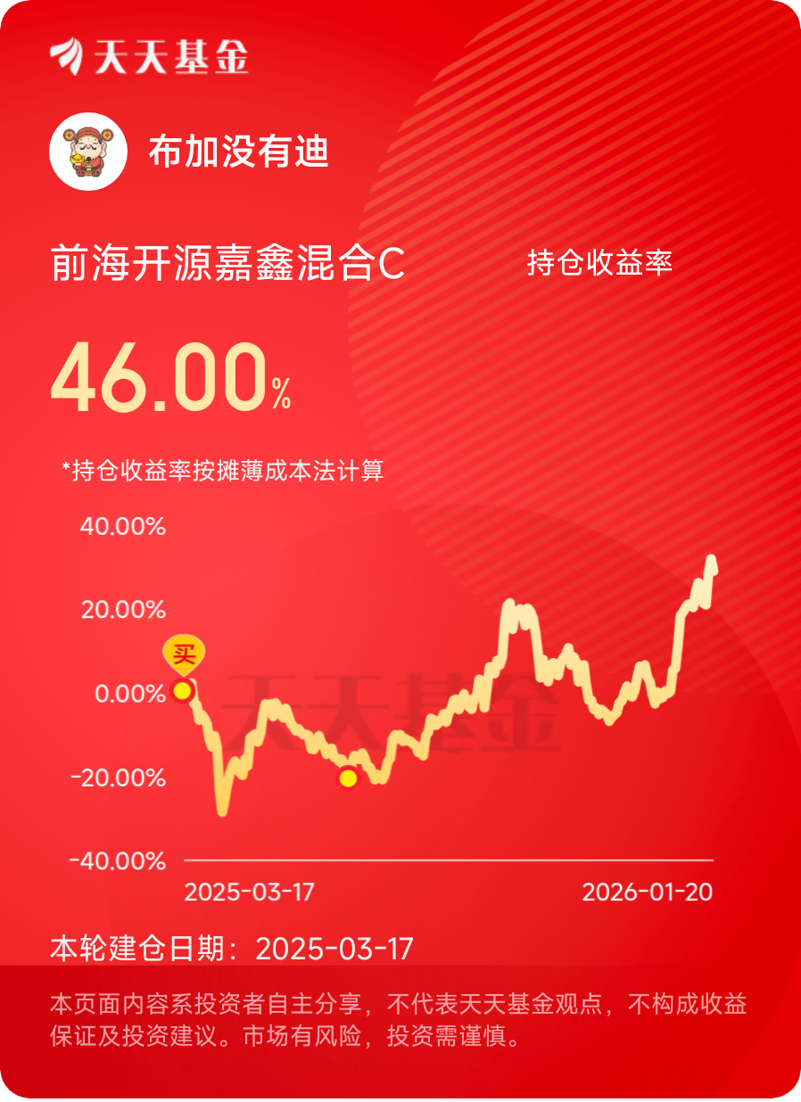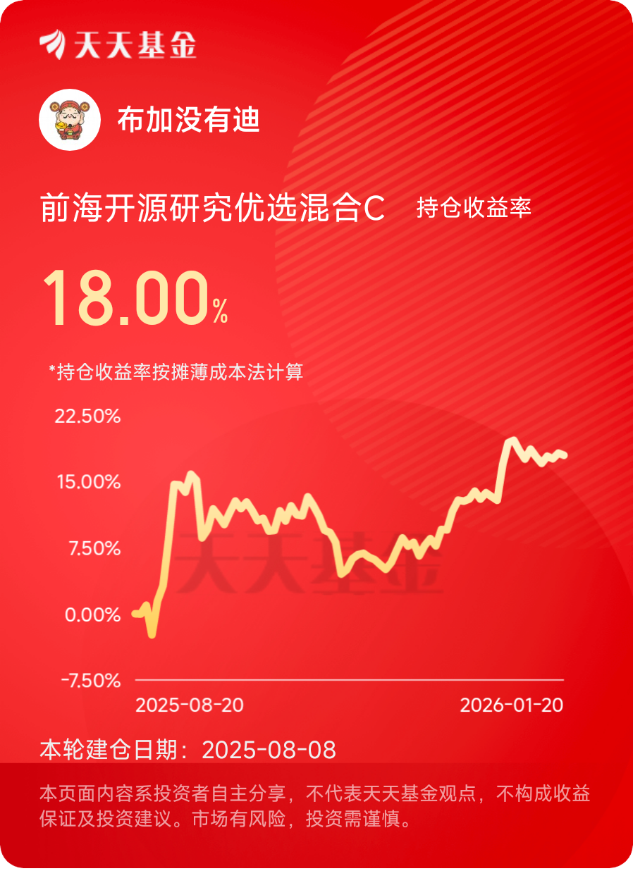 总而言之,前海开源裕泽(FOF)凭借其多元资产配置的优势、稳健向好的业绩表现与广阔的成长前景,成为我资产配置中的核心选择。在复杂多变的市场环境中,我相信这款产品能够凭借专业的管理能力,穿越牛熊周期,为我的资产实现长期、稳定的增值,这既是我的期待,也是我选择坚定配置的底气所在。@前海开源基金