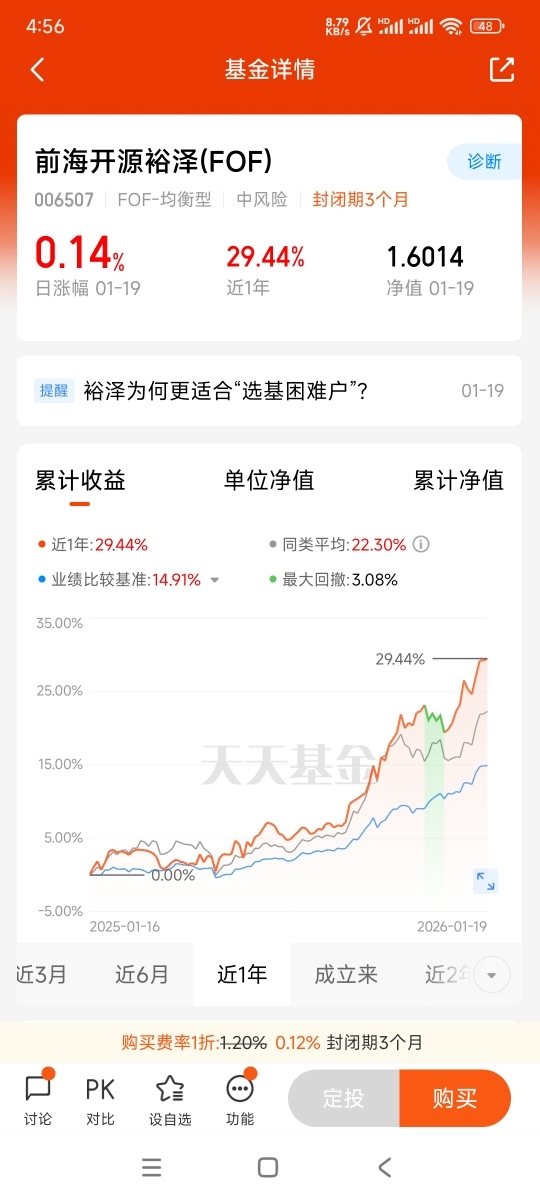 我选择$前海开源裕泽(FOF)$的期待是:多元配置筑底,期待长期价值。在当前市场波动加剧、资产轮动加速的背景下,依托其专业的多资产配置能力、扎实的历史业绩支撑与清晰的长期增长逻辑,实现资产的稳健增值,摆脱“选基难”的困境,在省心省力中分享资本市场的长期红利。经过对基金合同、季度报告及市场表现的深度研究,我对其投资优势、投资价值与未来前景充满信心,并已做好长期积极配置的坚定决心。
