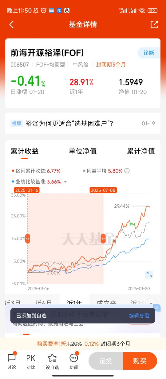 我选择前海开源裕泽(FOF)的期待是:依托专业的多资产配置能力,在中风险的投资维度里,实现资产的稳健增值,既能避开单一基金或板块的投资陷阱,又能把握市场结构性行情的红利,成为我投资组合里穿越牛熊的“压舱石”。作为一名普通投资者,没有足够的时间和专业能力去研究各类基金的优劣,也难以精准判断市场风格切换,此前踩过单一行业基金波动过大、择时失误的坑,而前海开源裕泽FOF的定位和运作逻辑,恰好契合了我对“专业打理、均衡配置、稳健收益”的核心需求。