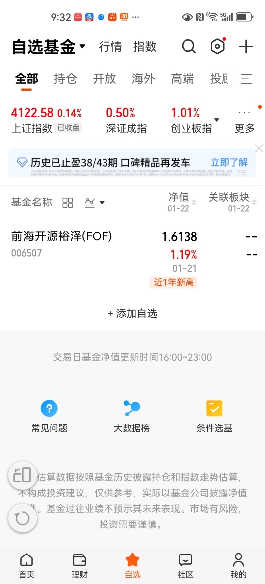 前海开源裕泽(FOF)这只基金是一支风险很低的一直基金,我仔细看了一下他的持仓,主要是以债基和ETF为主,这样的基金波动率很低,风偏低的人的最优选择,现在的银行利息那么低,我们不能只靠银行,增加多元投资是必然的,多一个选择多一份收益@前海开源基金